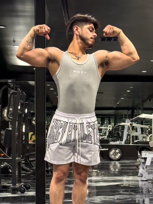 MESH FERAL "METALWING" MID-THIGH CUT SHORTS- WHITE